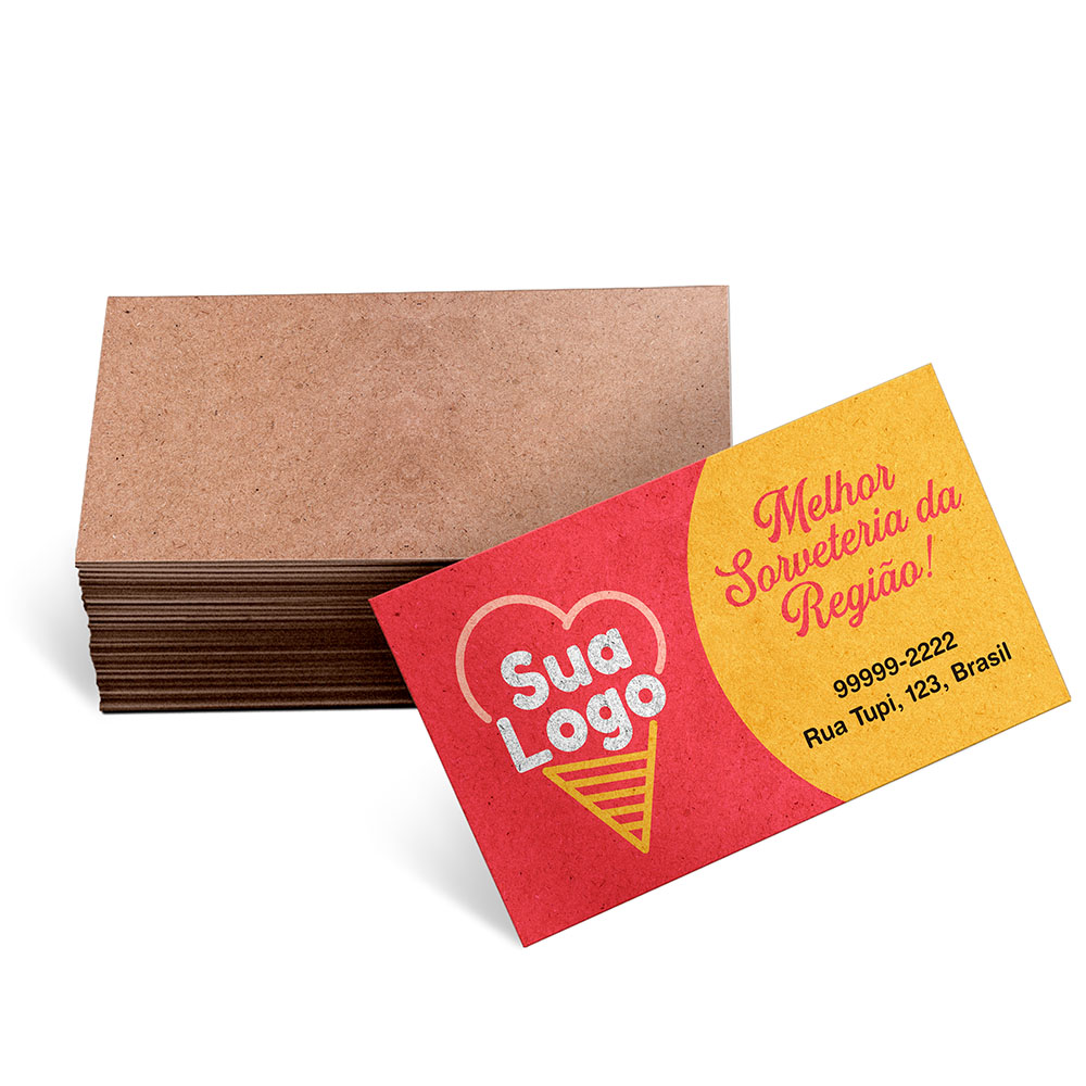 CARTÕES DE VISITA EUROPEU KRAFT 250G SEM LAMINAÇÃO E SEM VERNIZ UV SEM VERNIZ COM TINTA BRANCA Colorido frente - 500 un.