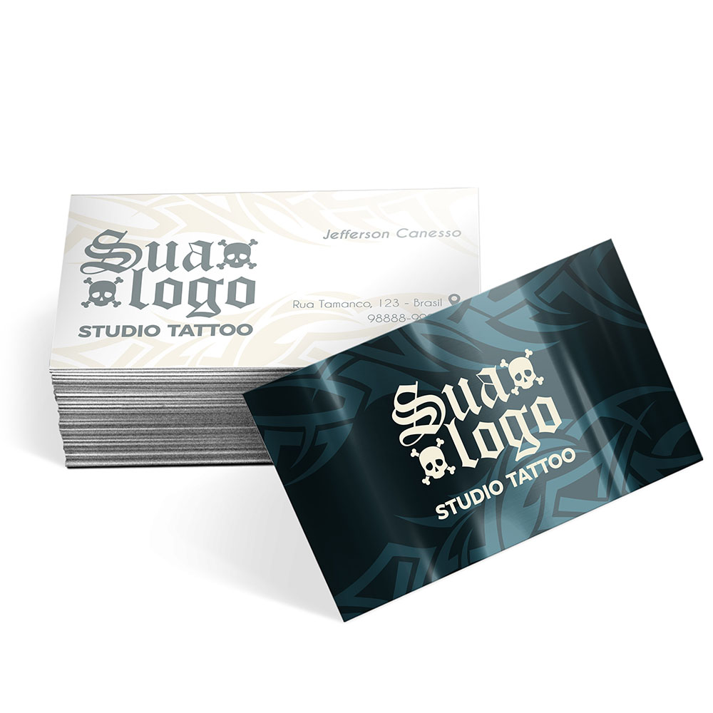 CARTÕES DE VISITA EUROPEU PAPÉIS ESPECIAIS METALIZADO FRENTE COM TINTA BRANCA 250G SEM VERNIZ Colorido frente e verso - 250 un.
