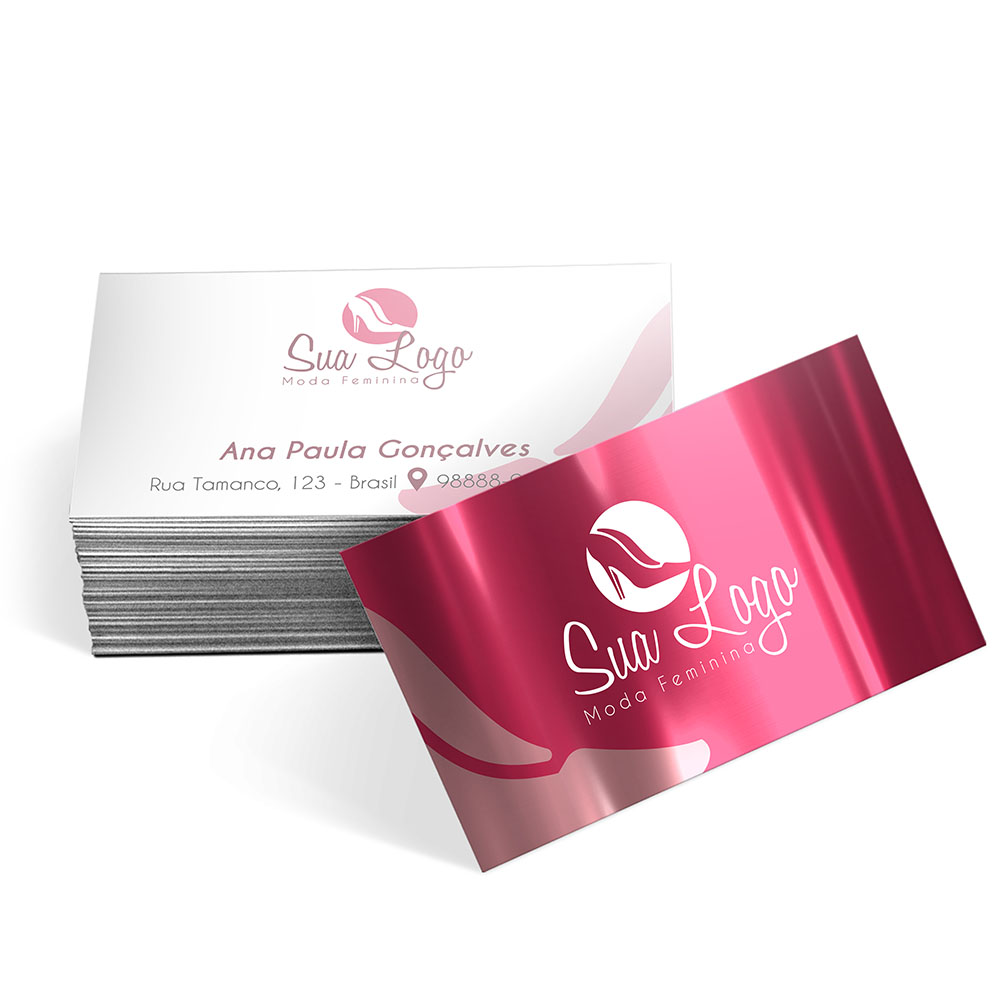 CARTÕES DE VISITA EUROPEU PAPÉIS ESPECIAIS METALIZADO FRENTE COM TINTA BRANCA 250G SEM VERNIZ Colorido frente e verso - 100 un.