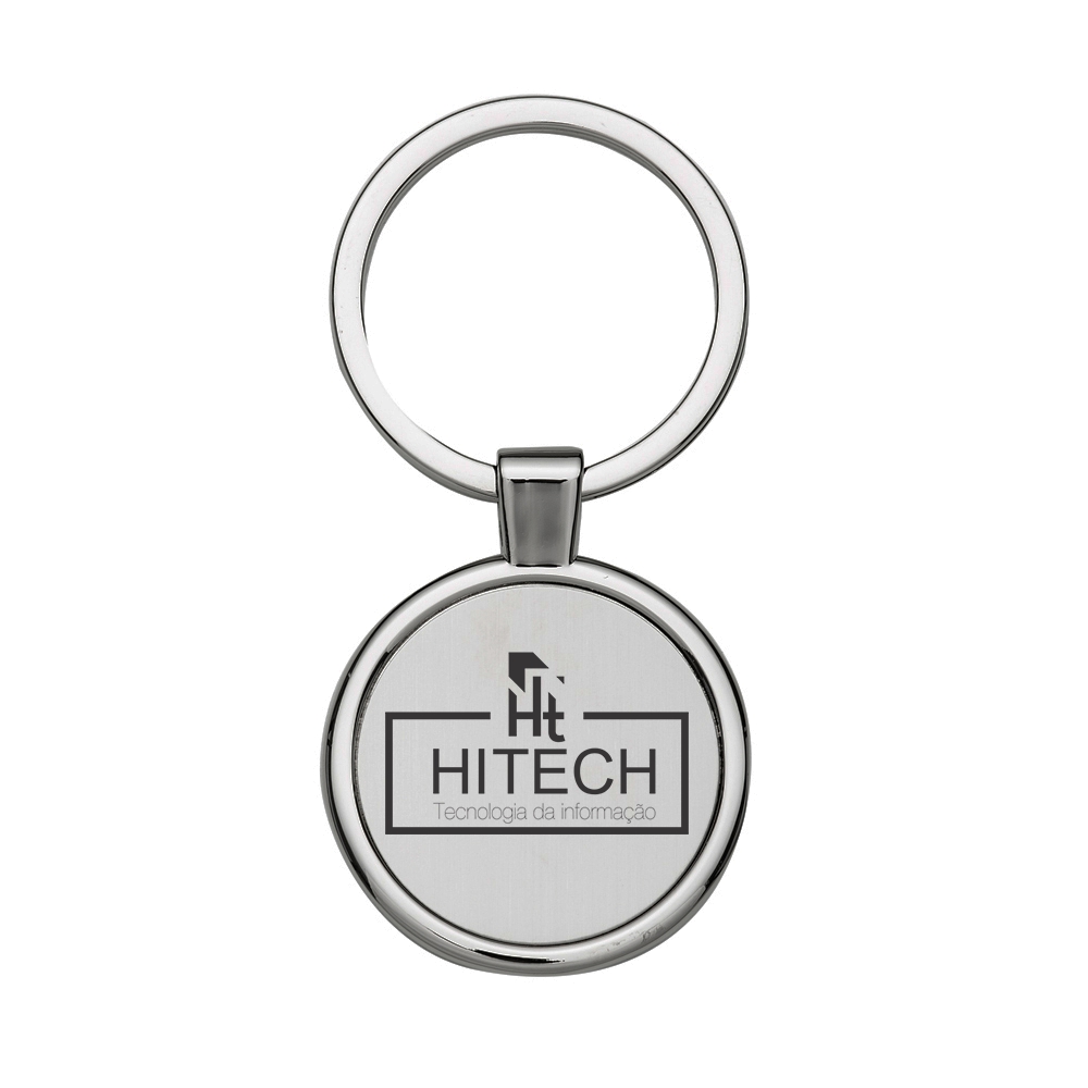 CHAVEIROS EM AÇO COM GRAVAÇÃO A LASER PREMIUM REDONDO Preto e branco frente - 50 un.