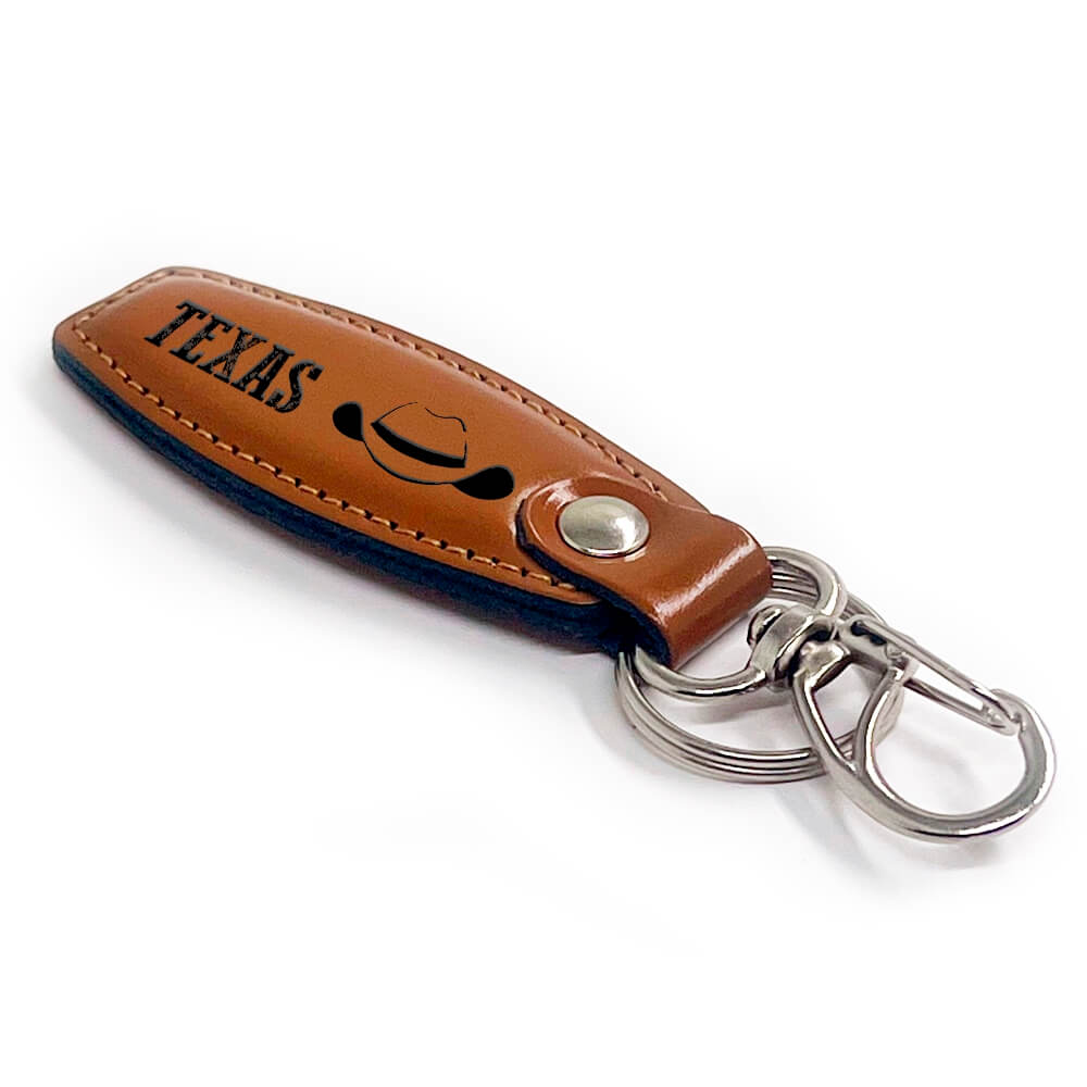 CHAVEIROS EM CORINO MARROM GRAVAÇÃO A LASER MODELO PRANCHA Preto e branco frente - 100 un.